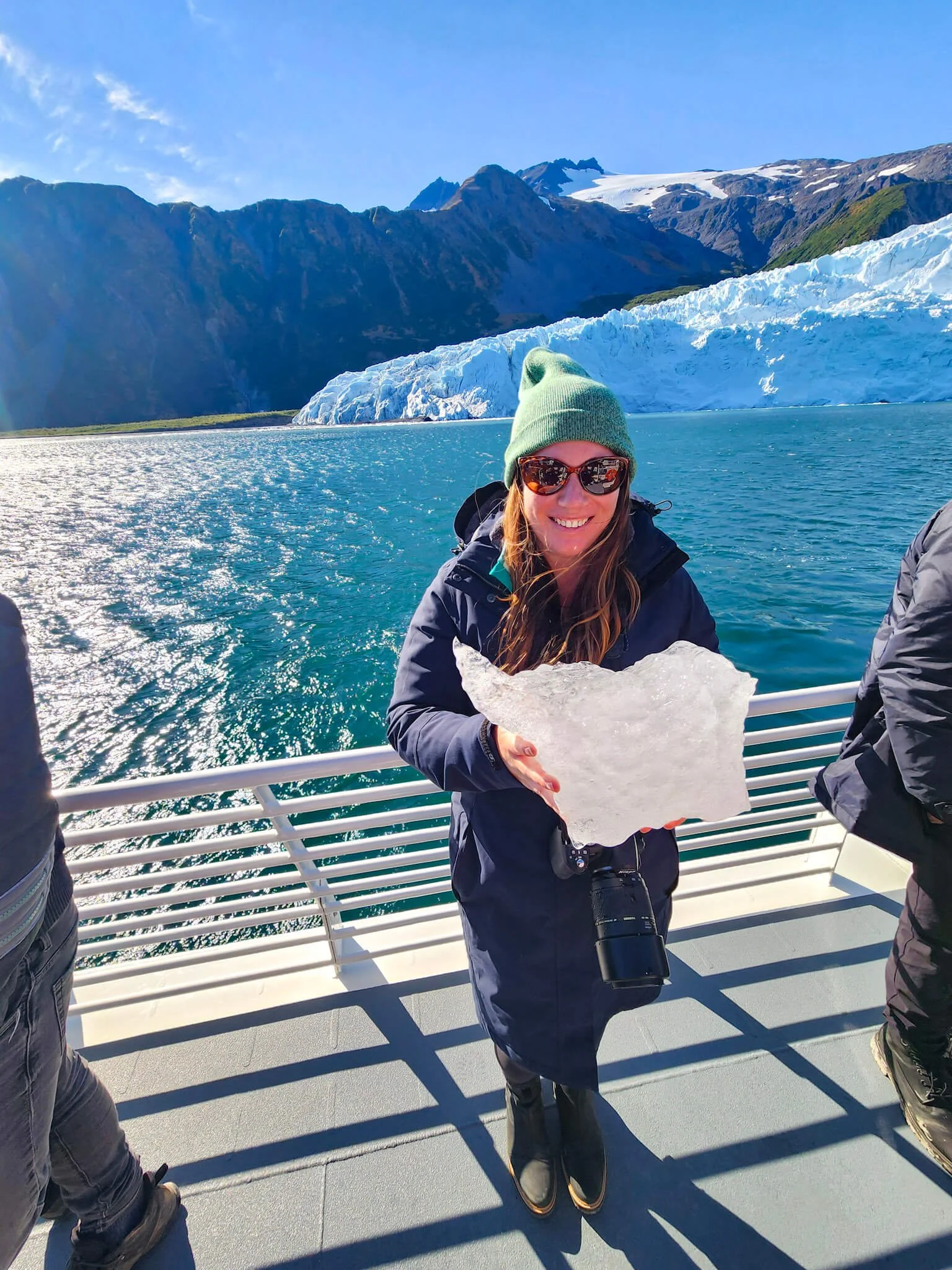 After you arrive at the tidewater glacier, a staff member will fish out a piece of the glacier from the bright blue waters below and let guests hold it and take pictures with it. Afterward, they’ll scoop up another small glacier fragment and crush it to add it to drinks served at the bar. Getting hands-on experience with a piece of one of the glaciers was one of the tour's highlights and a hit with everyone!