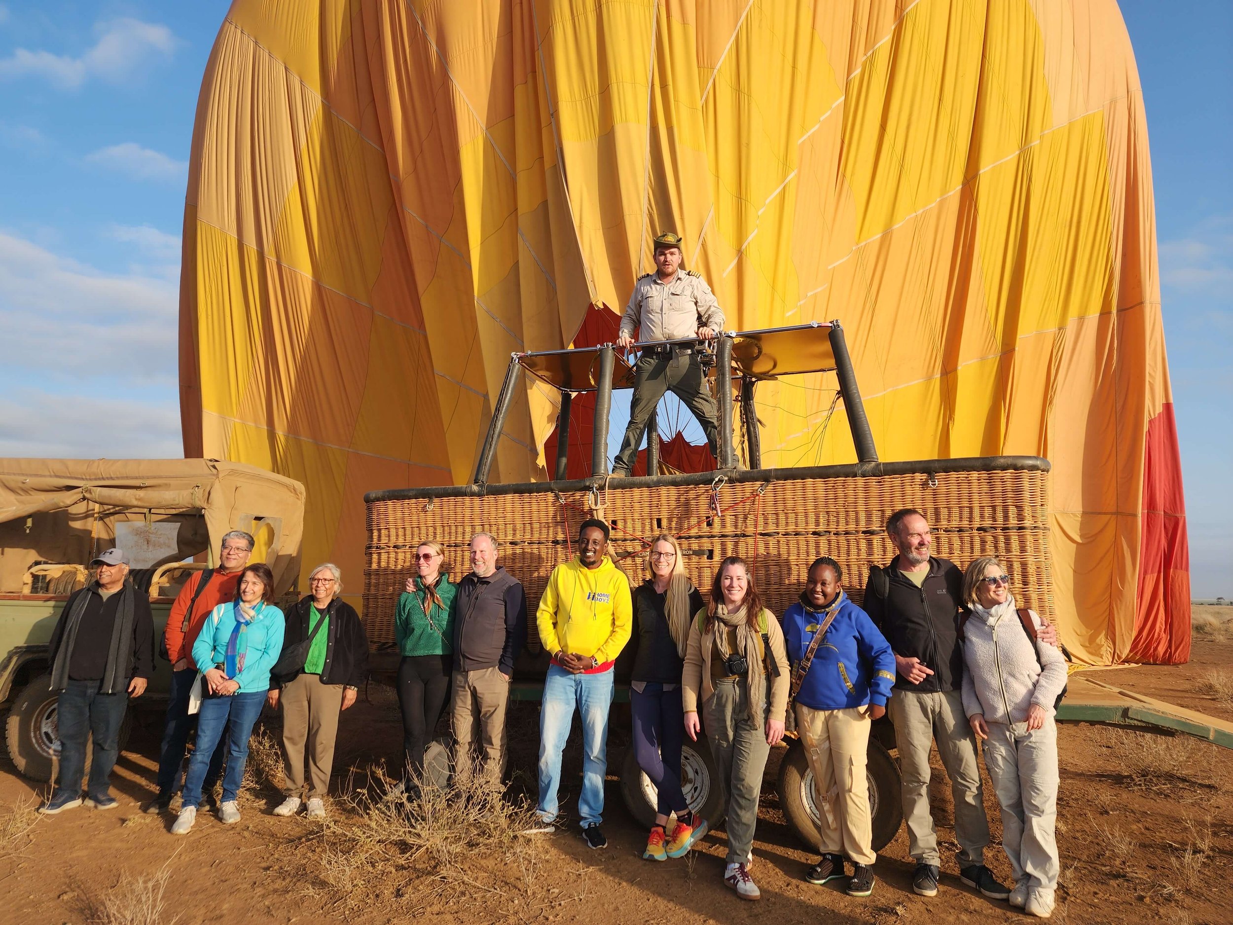 By 6:30am, the sun was coming up, and we were high in the sky. The entire landscape started to glow, and the colors in the sky shifted quickly. The morning clouds around Mount Kilimanjaro began to burn off, and the majestic mountain came into clear view. Everyone at this point was in awe.